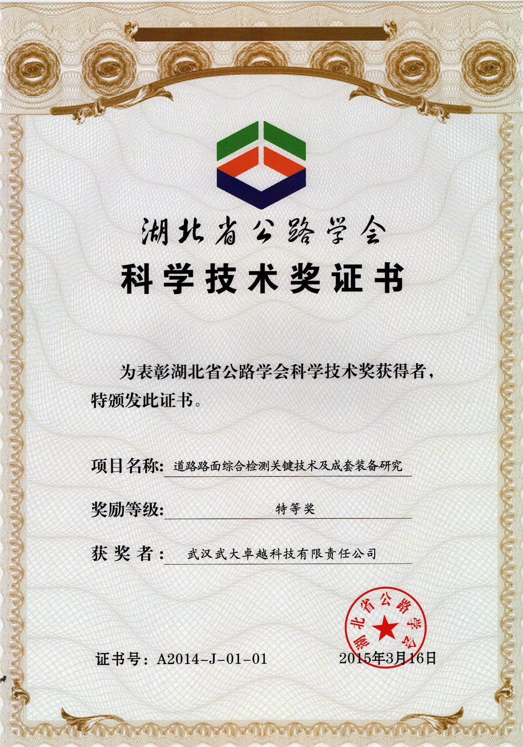日前,湖北省公路學(xué)會主持召開了2014年度湖北省公路學(xué)會科學(xué)技術(shù)獎頒獎大會,卓越科技“道路路面綜合檢測關(guān)鍵技術(shù)及成套裝備研究”項(xiàng)目脫穎而出,榮獲“湖北省公路學(xué)會科學(xué)技術(shù)獎特等獎”,彰顯了卓越科技的雄厚技術(shù)實(shí)力與科技研發(fā)實(shí)力。
