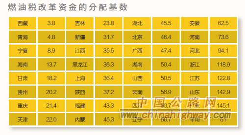 ??比如,湖北和北京公路養(yǎng)護(hù)里程相差甚遠(yuǎn),但養(yǎng)護(hù)資金的基數(shù)卻基本相同;同理,黑龍江和上?;鞠嗤?,重慶和天津基本相同……