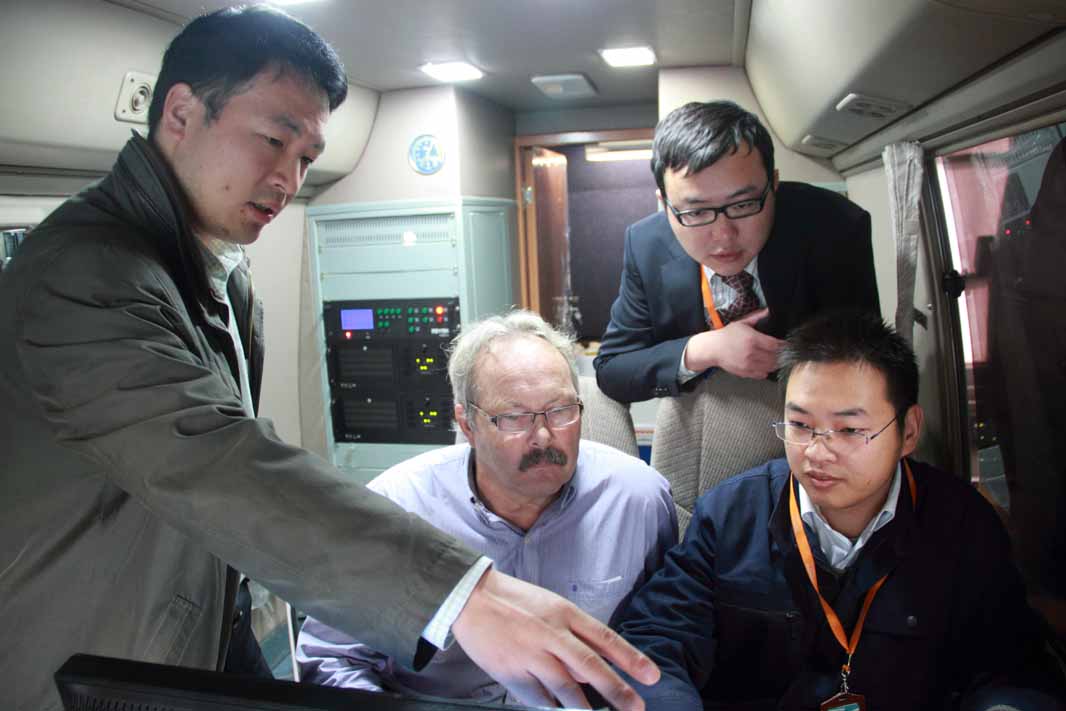 ????2012年11月14日上午9時(shí),加拿大瑞爾森大學(xué)(Ryerson?University)測繪工程、土木工程系教授MICHAEL?ALASTAIR?CHAPMAN(以下簡稱邁克教授)來我公司參觀交流。邁克教授在卓越科技董事長曹民先生、首席技術(shù)顧問毛慶洲博士等人的陪同下參觀了卓越科技自主研發(fā)的智能道路檢測系統(tǒng)。
